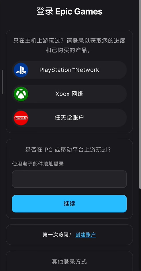 EPIC手机端打开后需要登录我们的账号,但很多人会出现404问题,此时有两种解决方法