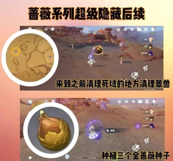 来到之前清理死域的地方,种植金蔷薇种子「註:必须种植三个」,等到现实第二天回来这里。