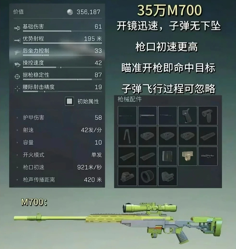 消音器 + 高倍镜 + 弹匣扩容,提升远**度(适合开阔地图如沙漠)。
