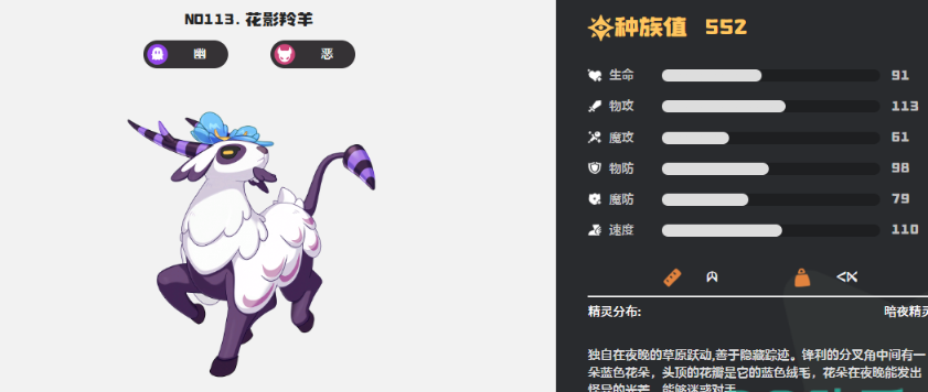 花影羚羊——幽灵/恶魔双属性精灵,具备出色的能耗干扰与生存韧性。其核心机制在于:释放恶系技能时,强制削减敌方3点能量。技能组合建议为【虚假破产】(伤害减免80%,大幅提升站场容错)、【恶意逃离】(防御状态下抬高对手技能消耗)、【欺诈契约】(与目标互换增益/减益状态,实现战术反转)及主输出技【恶能量】(高倍率物理伤害,衔接连招节奏)。