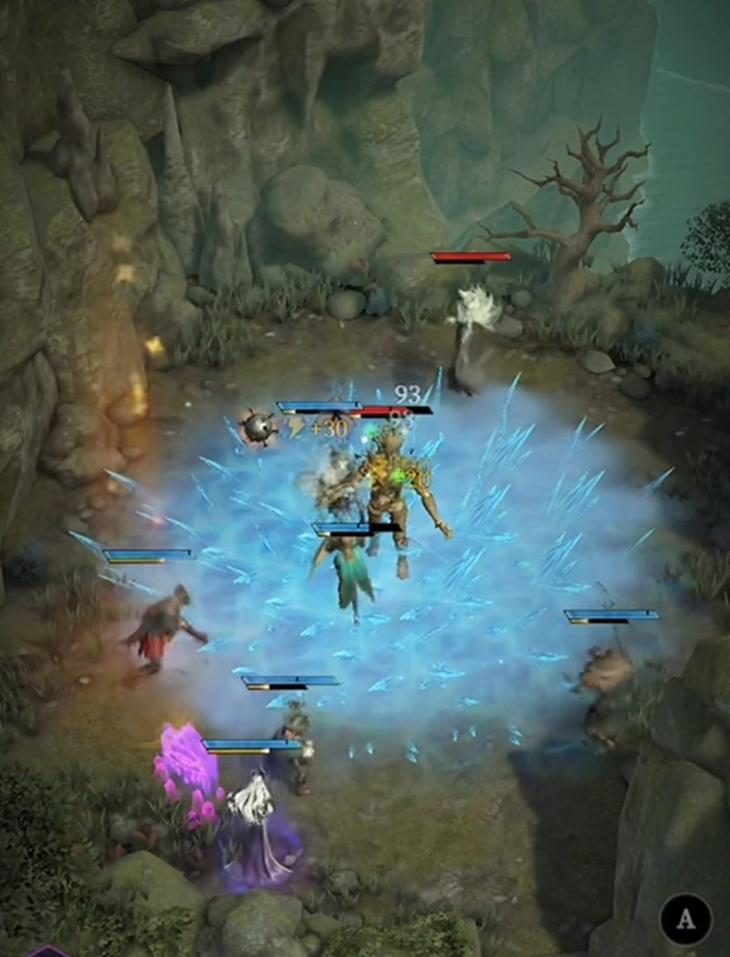 站位安排方面,建议将两名单体输出角色分别对位左右两侧的小怪,优先快速击杀这两只目标。其余三名角色中,前排应正面对抗树精伊赫仑,阻挡其前进路线,治疗与主远程输出则置于后排安全位置进行支援。这样的布局既能保证小怪被精准清除,又能防止攻击误触后方保留的小怪,确保伊赫仑始终处于非回血状态。