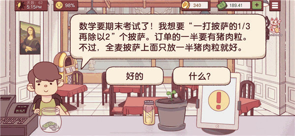 12、遇到这个如果你解锁了蘑菇,橄榄,洋葱,青椒就点“是”,如果配料不全就点“否”。后面还会来给你50块钱。酱料+芝士+蘑菇+橄榄+洋葱+青椒,另外顺便说一下纯素食披萨是酱料+蘑菇+橄榄+洋葱+青椒。就是比素食披萨少了芝士。