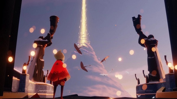找到黄色人影,与它们互动 收集“光之翼”,我们的 飞行技能就可以得到 升级――斗篷背后 星星的数量就代表我们的飞行级别。