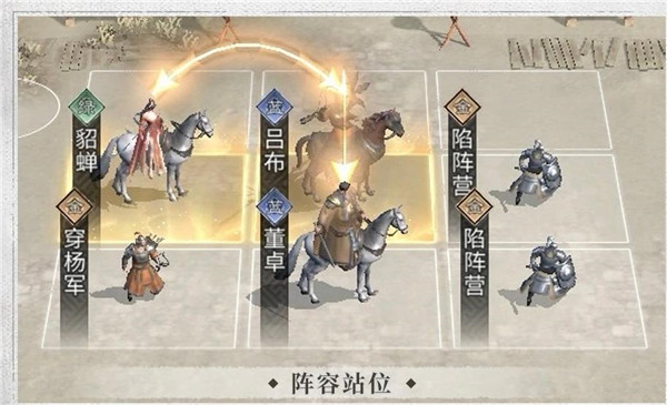吕布貂蝉互踩追击格,同时吕布踩中董卓提供的追击格,同时使用生存能力较强的盾兵吸收部分伤害如果董卓的养成程度比较高,则可以上阵更多输出兵种增强多穿能力。