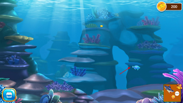 3、要吃小鱼才能长成一位海底霸主,但是你必须首先避开比你大的鱼,因为它会把你吃掉。