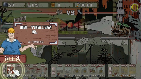 3、手绘的漫画画风打造,灵活建筑各类建筑,组建你的幸存者团队,去战胜僵尸;