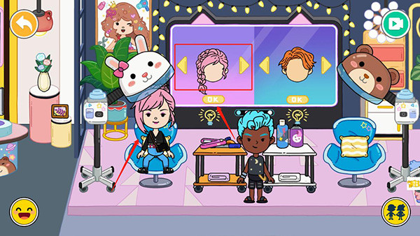 7、为前来做发型的顾客制定发型,拖动角色到椅子上;