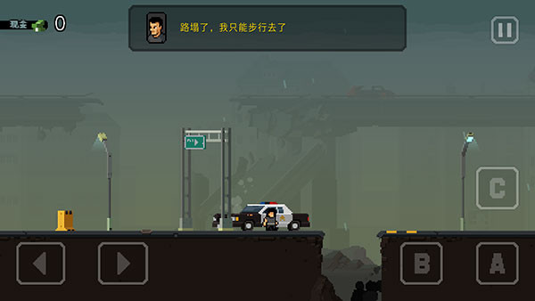 2、左下角是控制角色前进和后退的按键,我们按照指引往前探索,在道路塌方处点击【A】就可以跨过去。