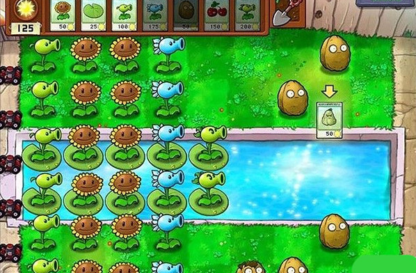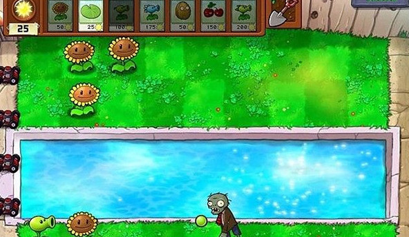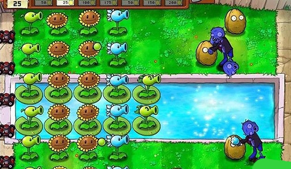 2、庭院、池塘和屋顶的场景需要玩家定制不同的策略,应对僵尸的进攻。