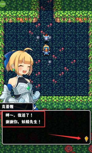 3、点击黄色菱形图标,复活克蕾雅并感谢妖精。