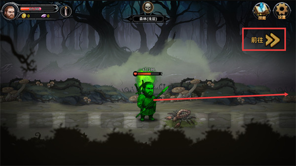 4、完成当前区域战斗后,点击界面的【前往】按钮,即可进入下一段【森林(浅层)】的探索流程,推进游戏进度。