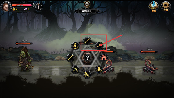 2、在【森林(浅层)】场景中,战斗时可使用界面中的武器类技能图标,搭配技能释放来应对敌方单位,提升战斗效率。