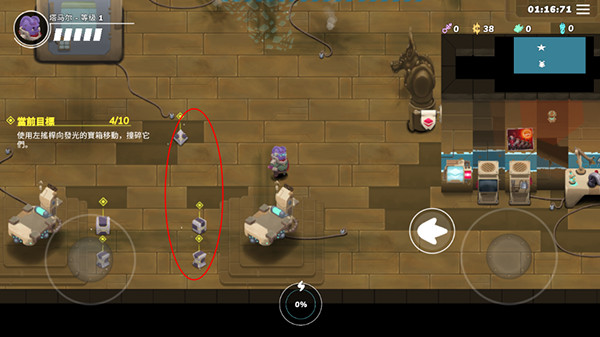 5、当我们拾取武器之后,游戏界面右侧的圆盘即可派上用场了,点击可以发射子弹攻击,滑动可以调整攻击方向