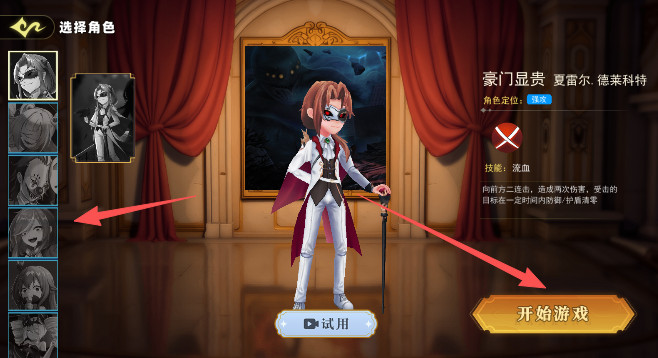 5、从以下狩猎者角色中,选择你要使用的角色开始。