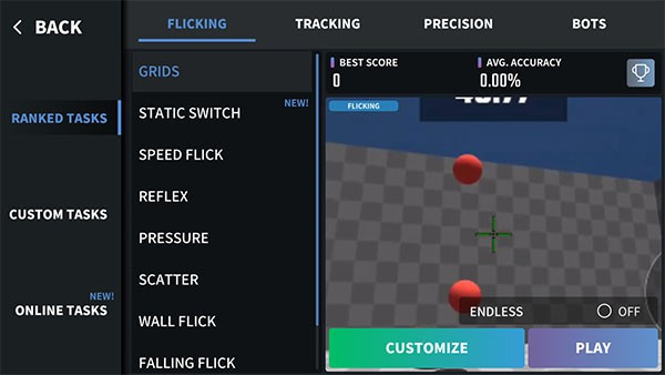 1、提供多种瞄准训练任务可选(近 20 种以上)