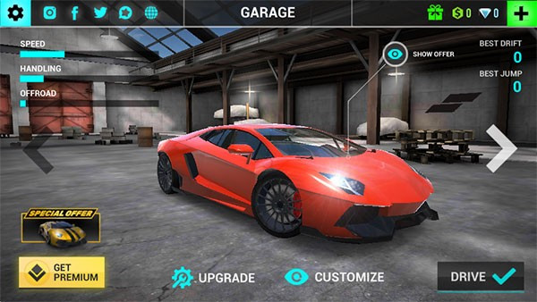 1、进入游戏后,可滑动屏幕切换赛车,甄选一款性能卓越的车辆是赢取竞赛桂冠的关键。