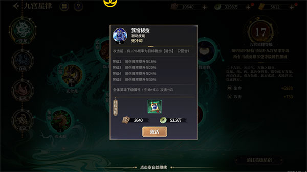 星宿技能在战斗时有着改变战局的能力。