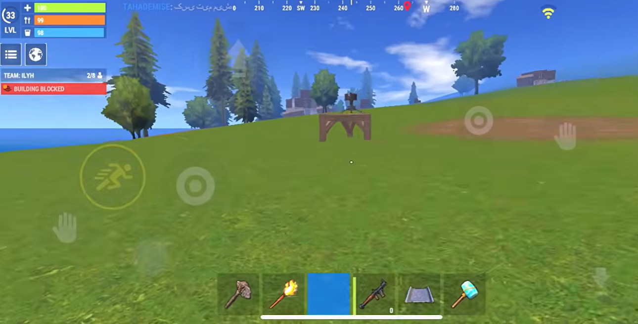 使用木头和石块建造简易房屋,保护资源和角色安全