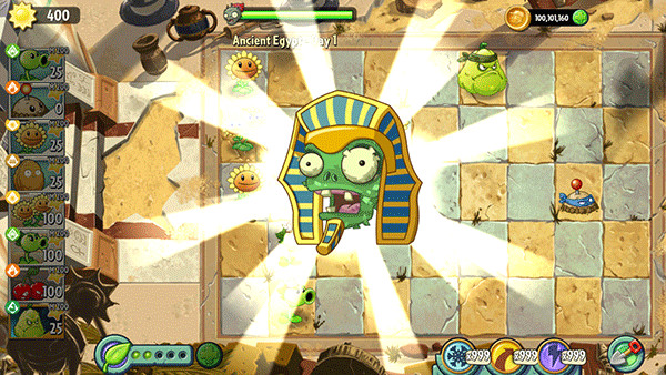 神秘埃及:背景设定在古埃及,玩家需要在金字塔、神庙等古迹中建立植物防线。