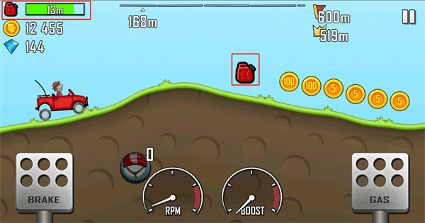 6、游戏中玩家需要拾取汽油来进行移动,当游戏左上角的油箱耗尽游戏就会结束;