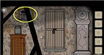 5、根据提示打开左边的柜子,会发现怀表,发送里面的时针数字是8,分针是5.
