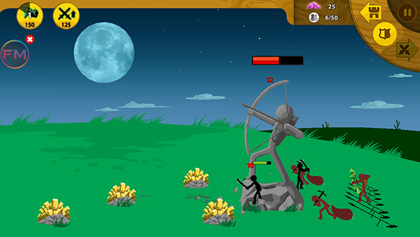 火柴人战争遗产FM魔改版是以火柴人为角色的塔防策略防御游戏。玩家将扮演火柴人采用冷兵器时期的道具比如狼牙棒、弓箭等。游戏里玩家目的就是摧毁地方火柴人雕像,并且主要进行造兵、挖矿、防守、升级士兵等。火柴人战争遗产FM魔改版下载具备多样化的兵种配置和很多的的角色设定,玩家需要组建自己的火柴人战队,指导它们进行战斗。