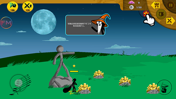 在游戏中,我们造出来的所有兵种都可以由我们所控制,点击一下角色即可获得控制权,左边移动,右边则是攻击或者挖矿。不同的角色有着不同的攻击技能,一定要善加利用哦。