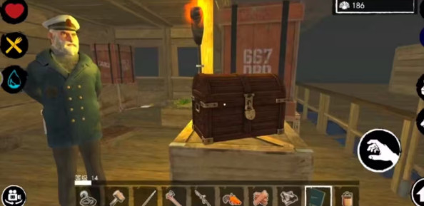 而这些材料怎么获得那?这个其实很简单。我们需要在商人来的时候,在他的船上使用贝壳进行购买。贝壳是需要我们在商人的船上和他进行交易,白点冲着宝箱,点一下小手,就可以卖给他东西换贝壳了。