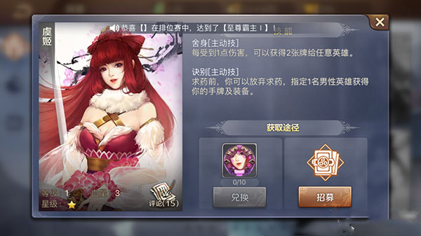提到单挑英雄勾子是一个绕不过去的啊人物。他虽说没有强力的摸牌技能,攻击力也非常一般,但是架不住他能存牌呀。别的英雄一般3~4张就是上限了,但是勾子却能够存20张,每出一张闪还能额外摸一张牌更是加快了他的攒牌步伐。等到时机成熟拿到虎符之后,勾子完全可以成为杀神一挑n。