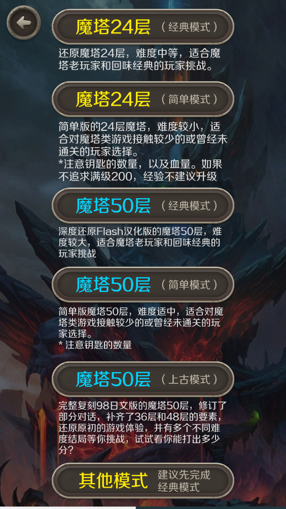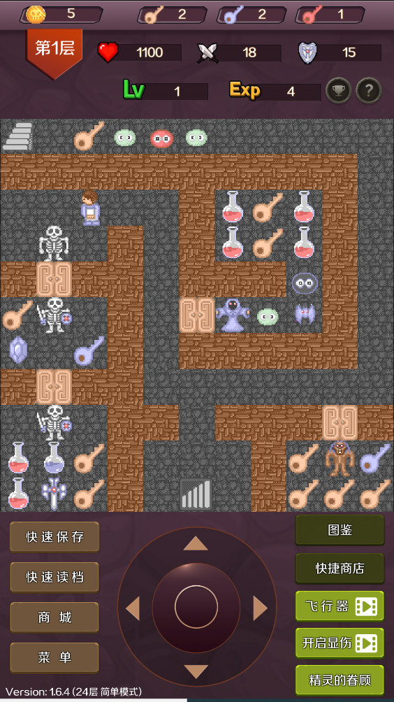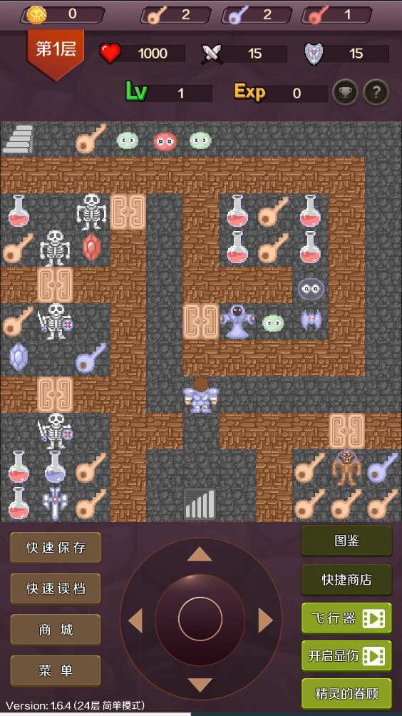 魔塔50层手机版是采用像素经典画风的动作格斗冒险游戏。游戏具备攻击、防御、生命、金币、经验等的属性,玩家对怪物的伤害次数计算公式,是敌人的生命。魔塔50层手机版下载围绕三种不同颜色的钥匙来进行,每一种颜色钥匙只能打开对应颜色的门。同时玩家需要到魔塔的最顶层去拯救公主,期间要找到自己失落的武器和装备提升自己的属性去挑战boss,成功拯救公主。
